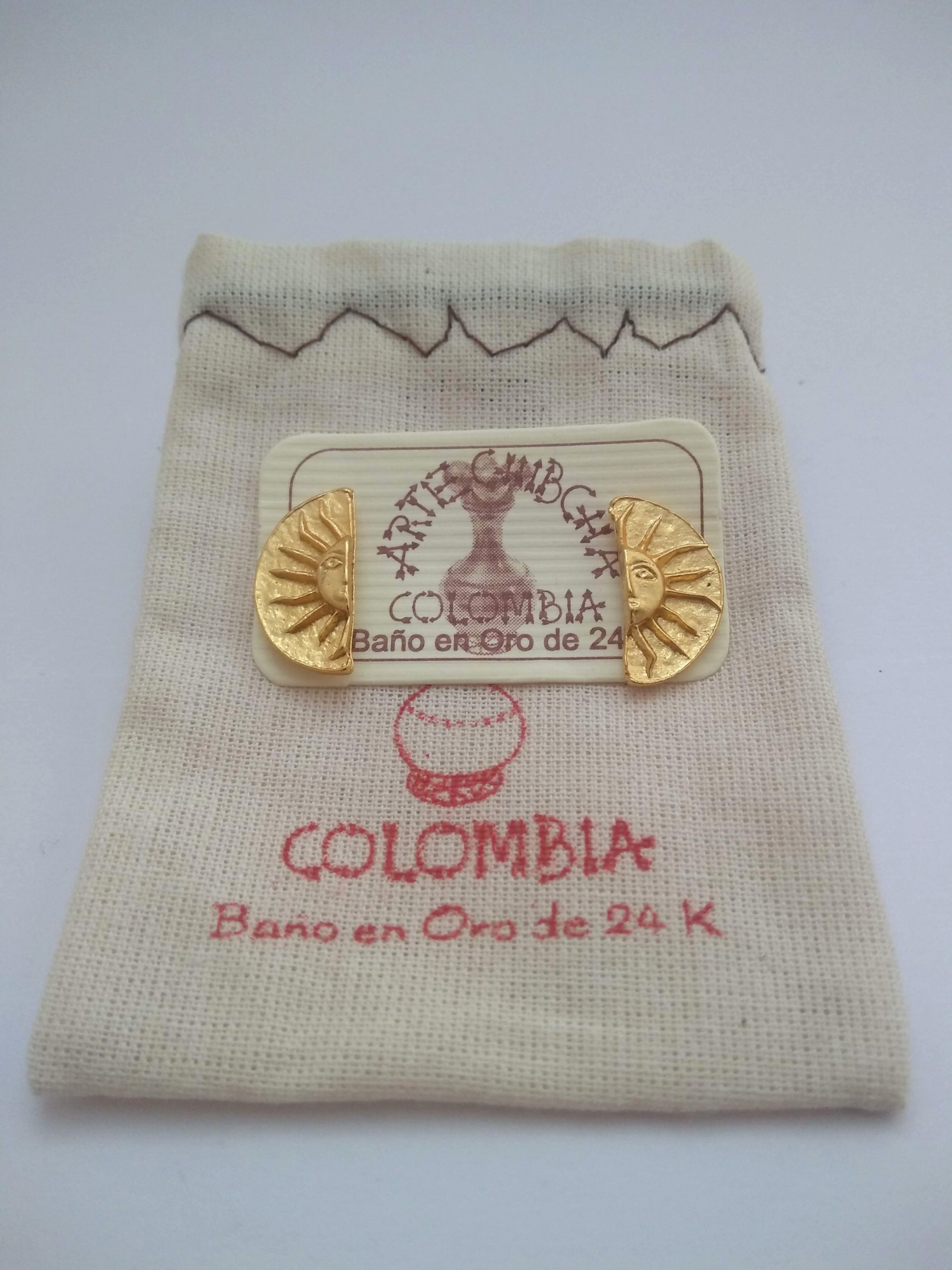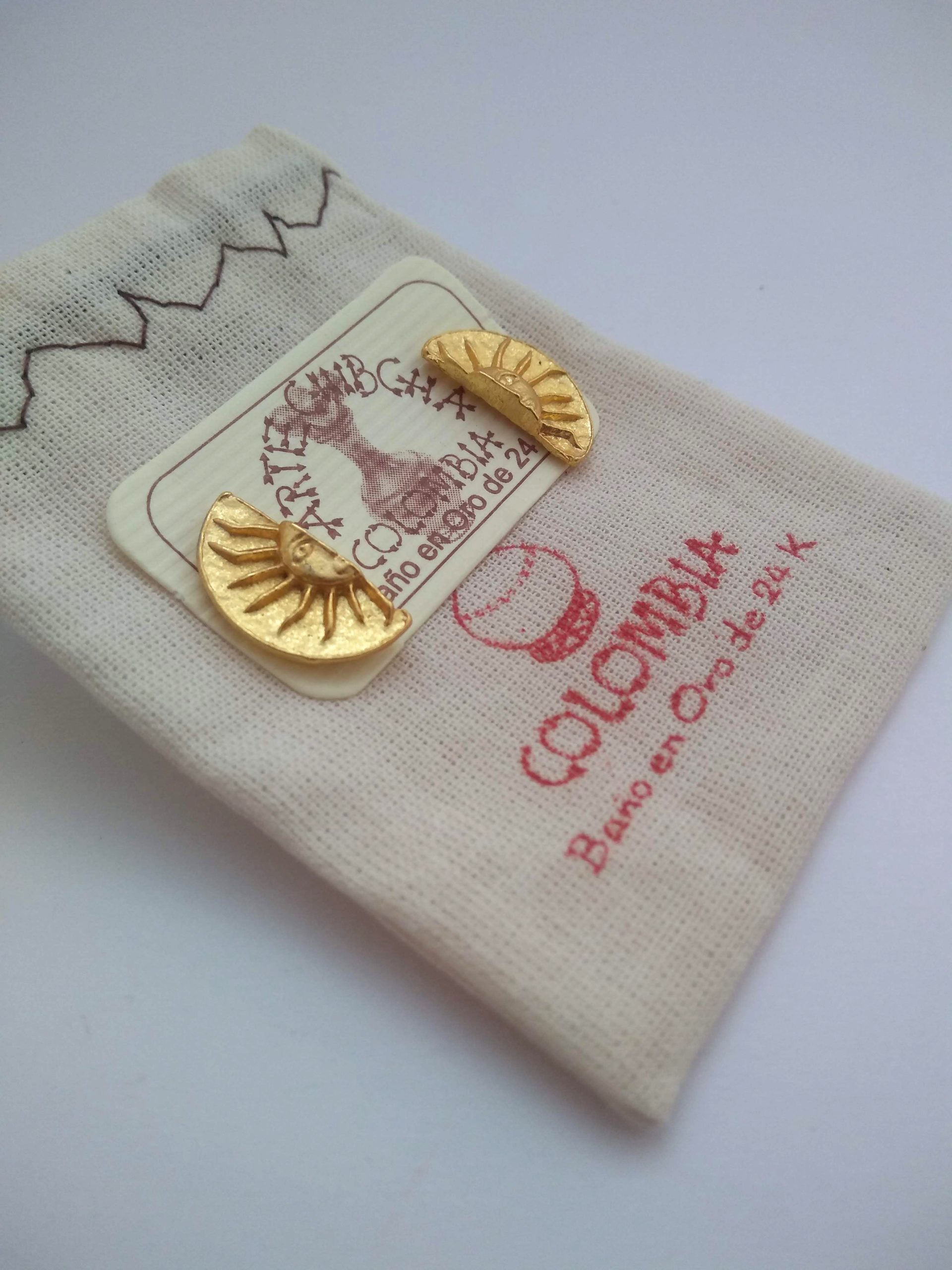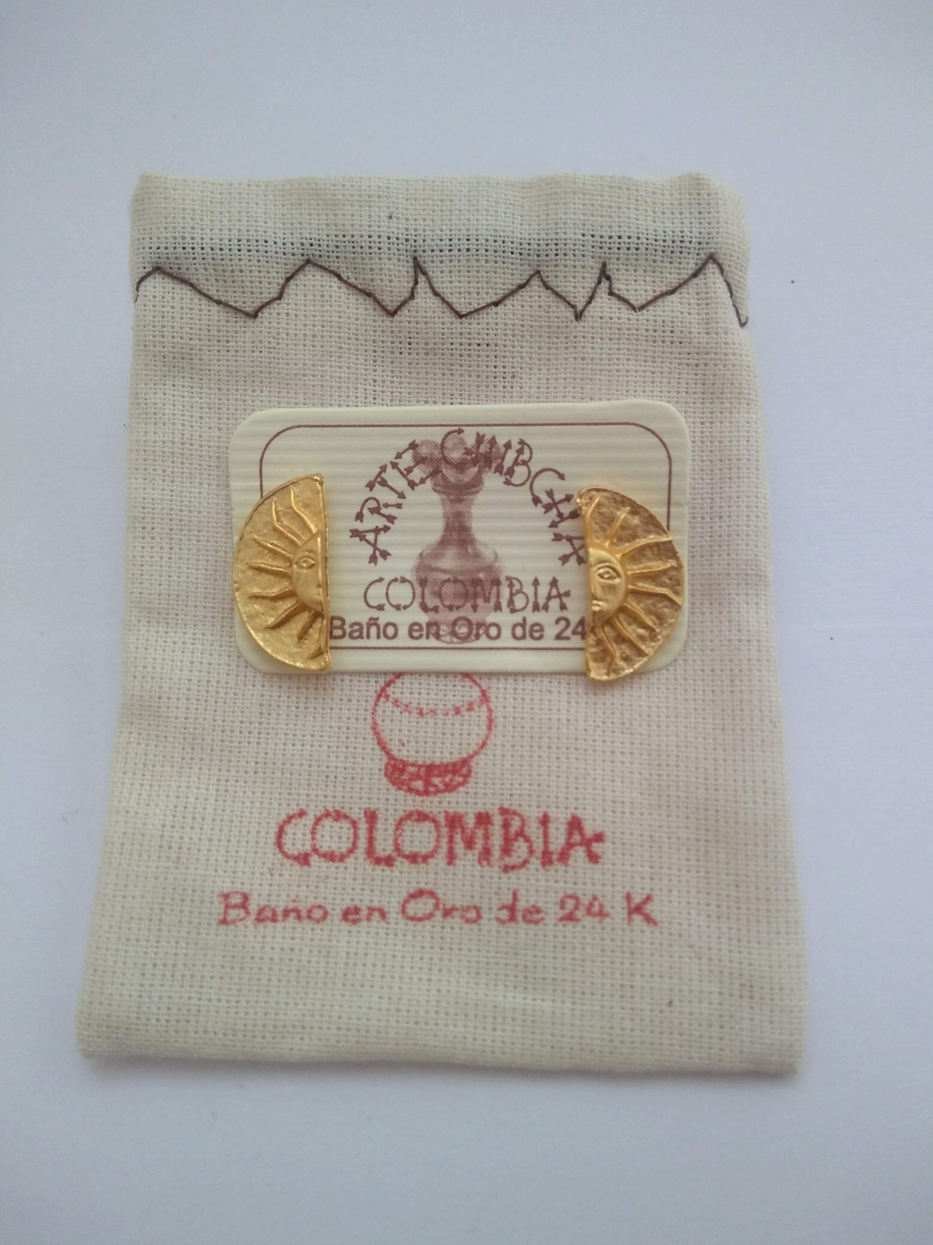 Elaborado con una aleación de metales, cuentan con un baño de oro 24 kilates con sistema puya antialérgico, así mismo cuenta con su respectiva bolsa protectora. Ref: Mui19-2