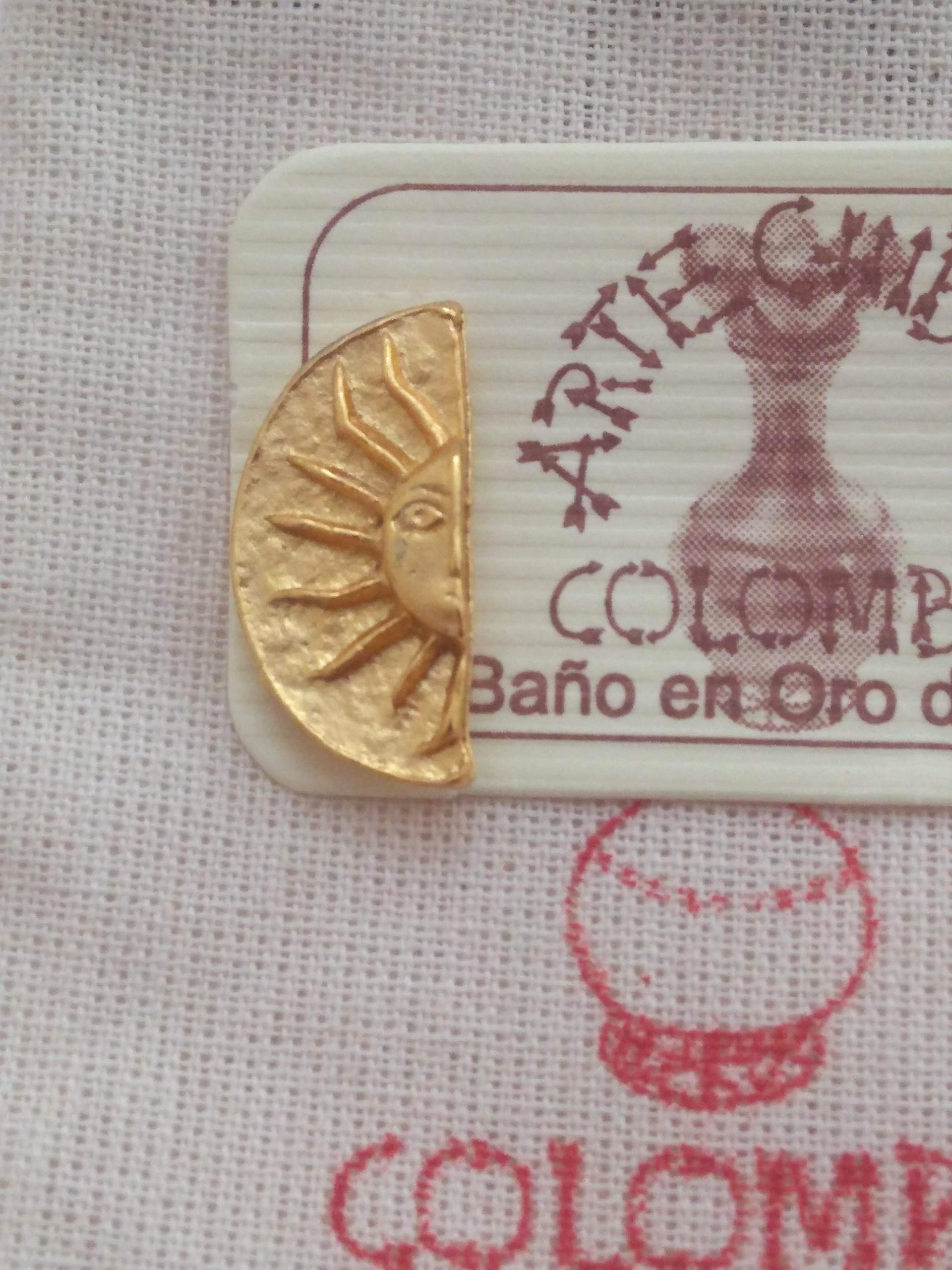 | Certificado | Usted ha comprado una pieza precolombina de Arte Chibcha Colombia Estas joyas se fabrican con una aleación de varios metales a la que después de algunos procesos controlados se les aplica un baño de oro, bronce envejecido o plata vieja según sea la pieza adquirida; de alta adherencia y confiabilidad. |