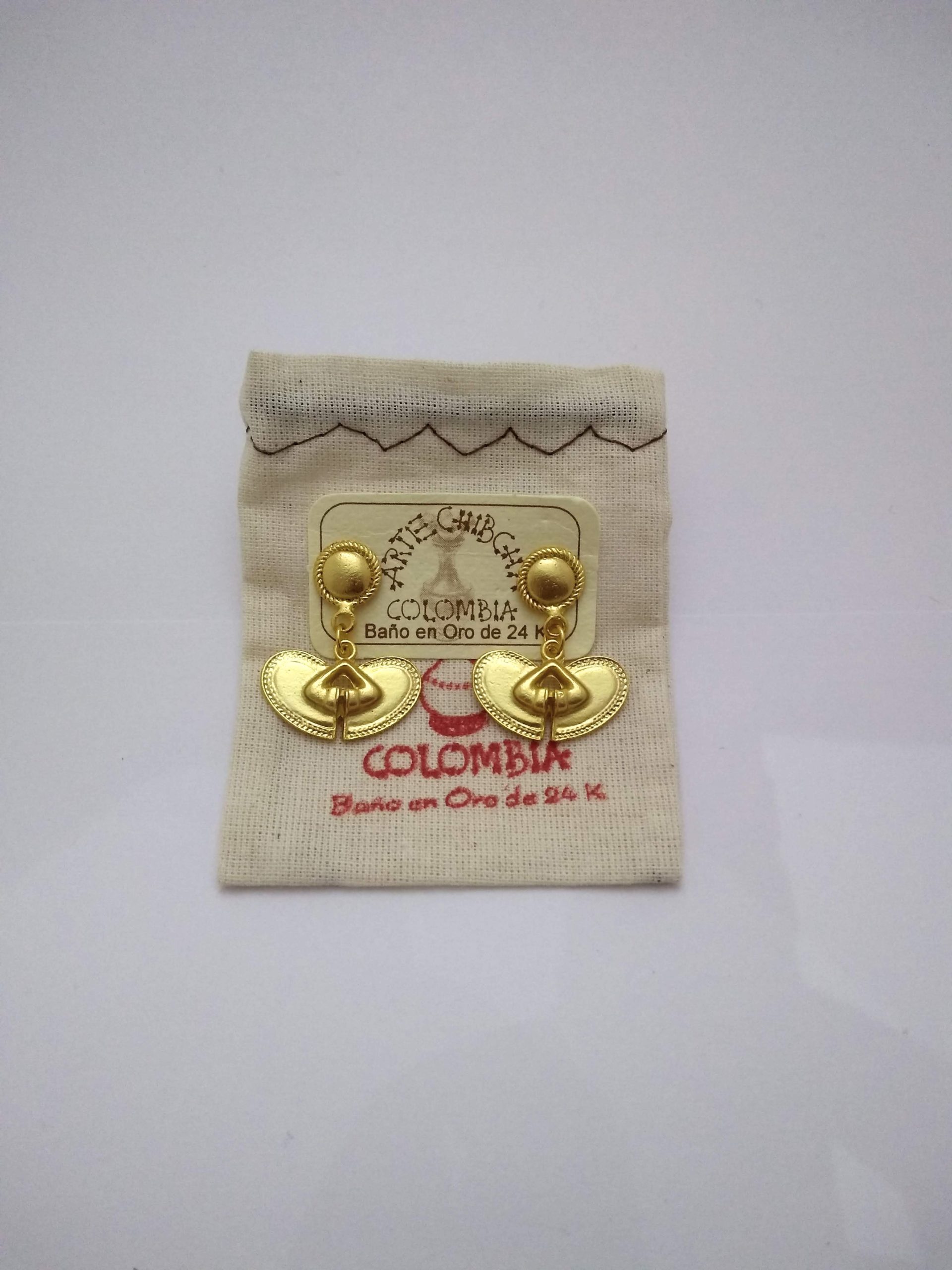Elaborado con una aleación de metales, cuentan con un baño de oro 24 kilates con sistema puya antialérgico, así mismo cuenta con su respectiva bolsa protectora. Ref: Tai7-6