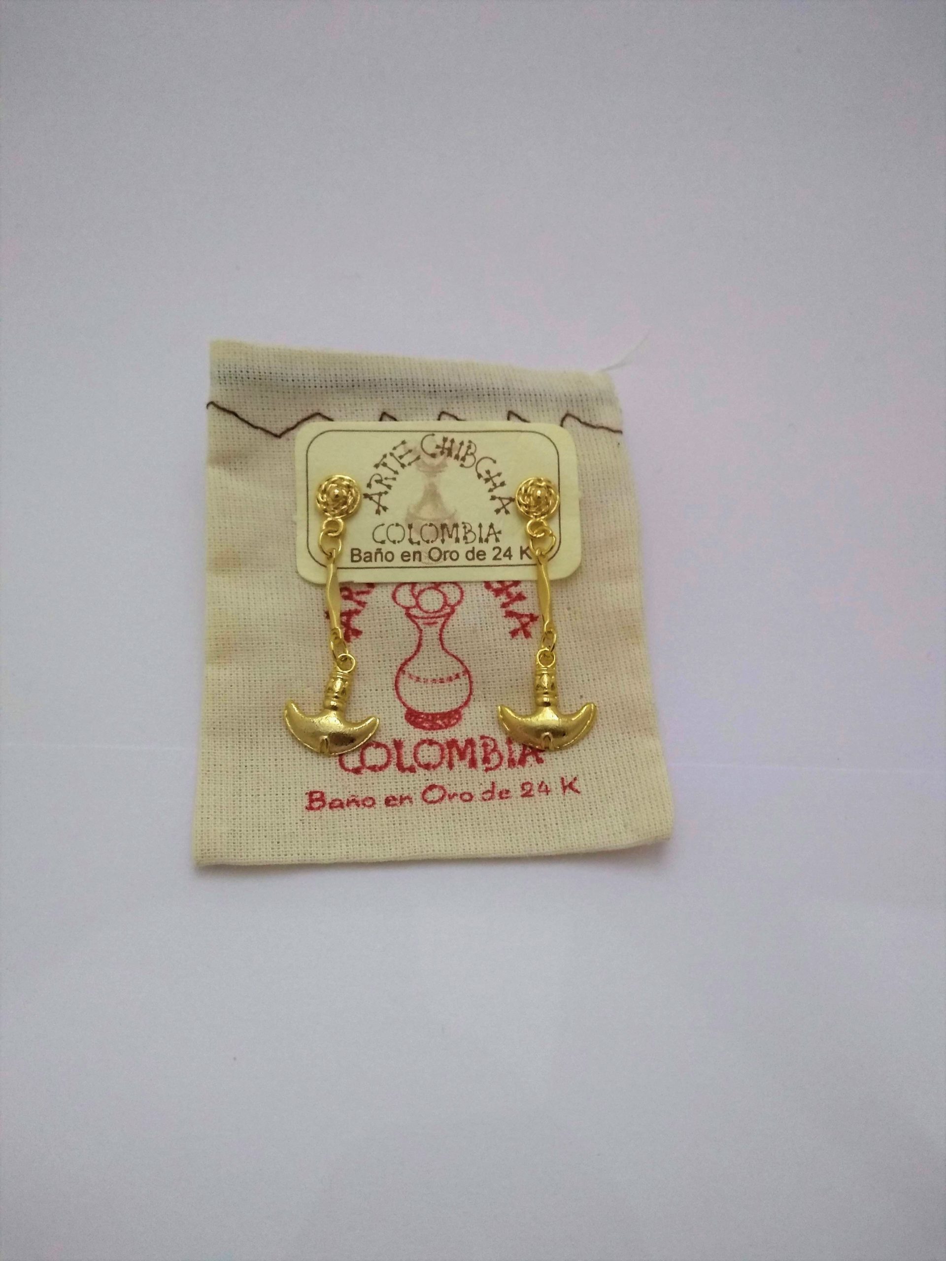 Elaborado con una aleación de metales, cuentan con un baño de oro 24 kilates con sistema puya antialérgico, así mismo cuenta con su respectiva bolsa protectora. Ref: Tai28-4-51
