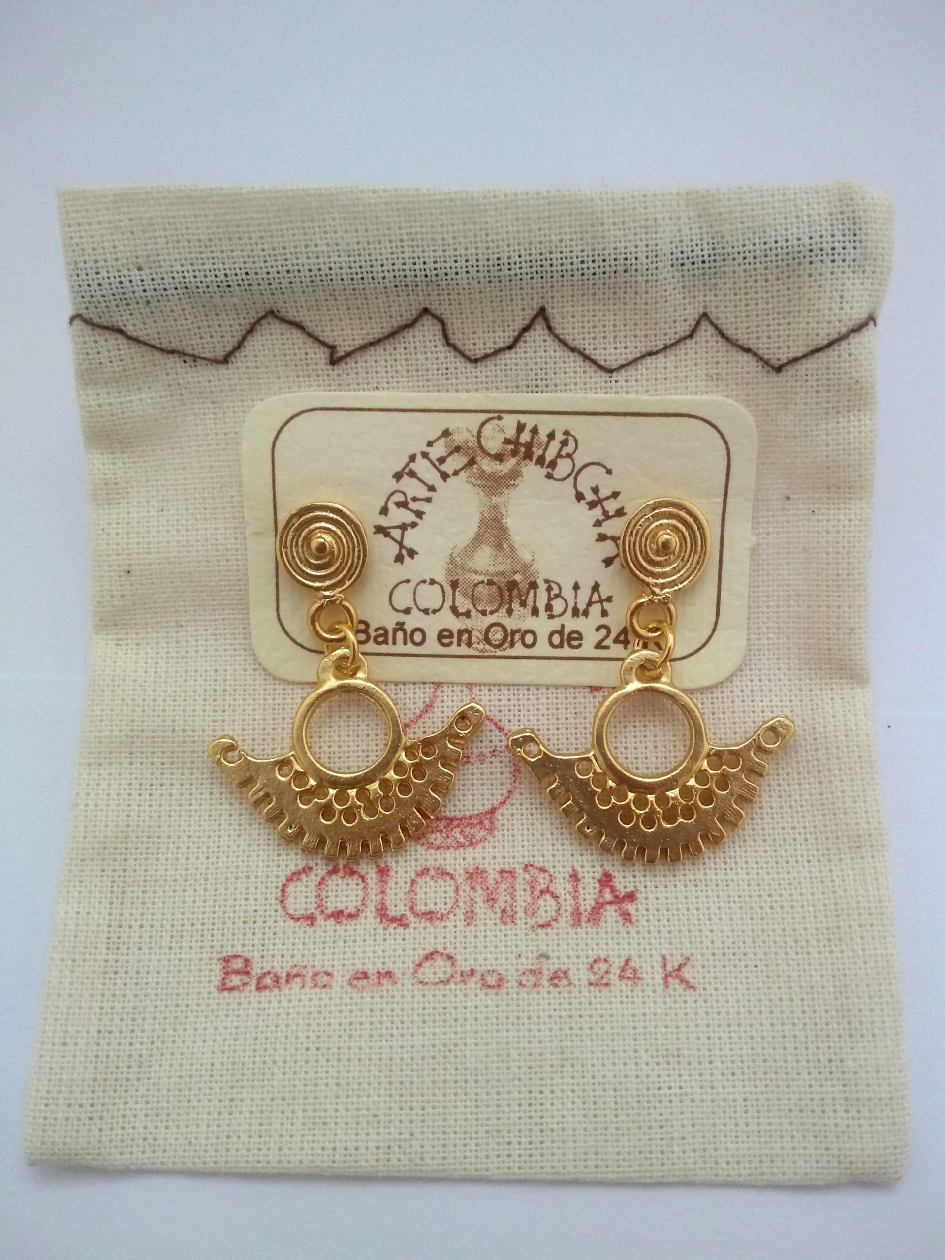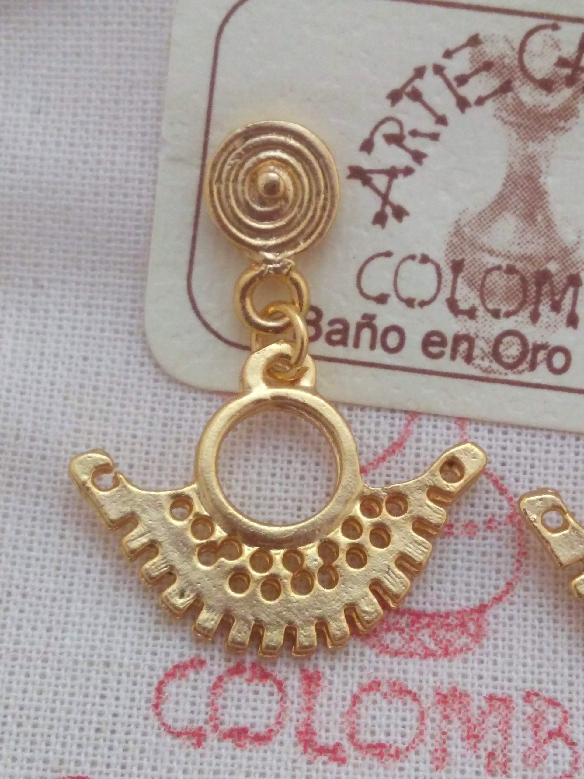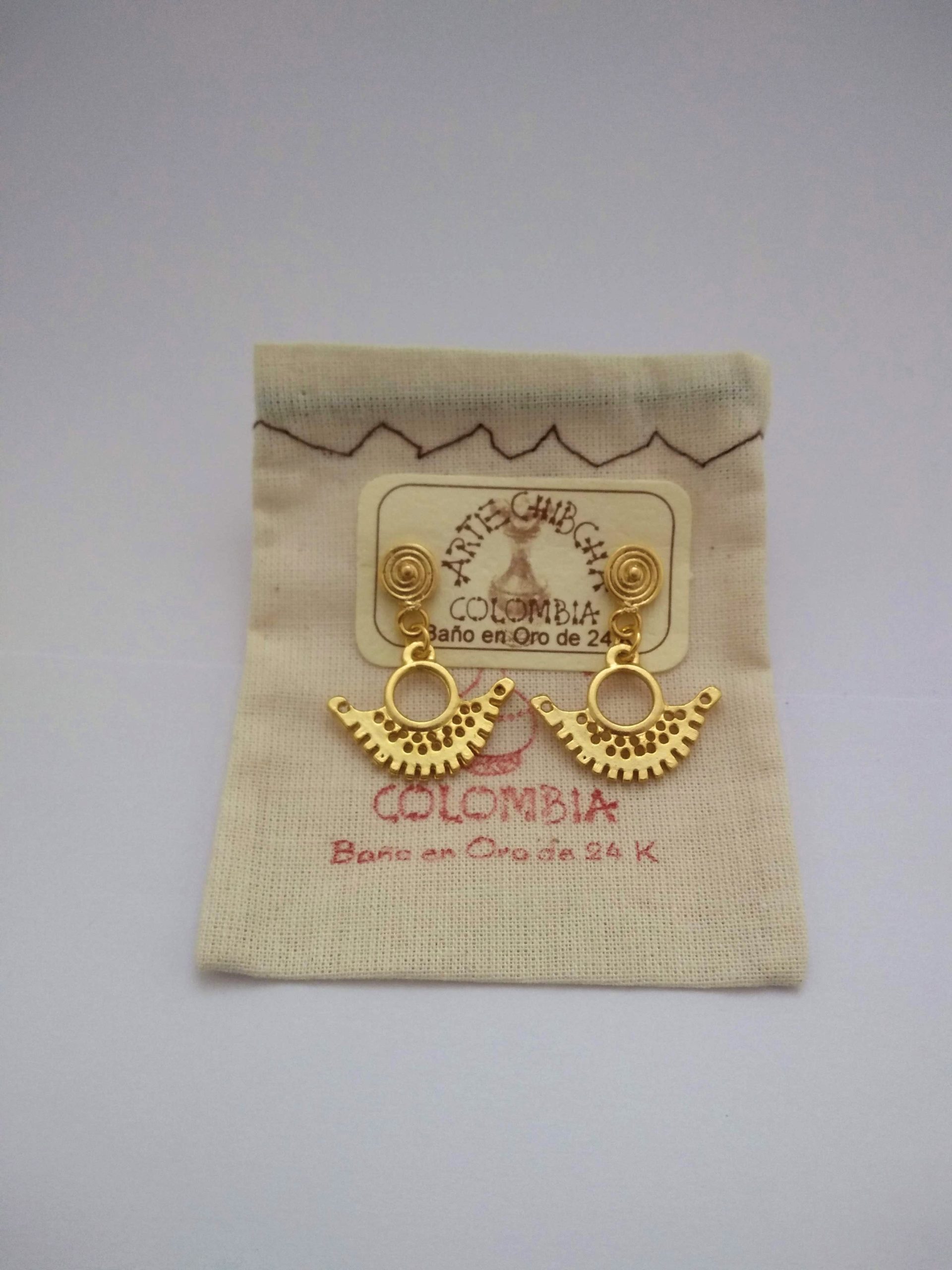 Elaborado con una aleación de metales, cuentan con un baño de oro 24 kilates con sistema puya antialérgico, así  mismo cuenta con su respectiva bolsa protectora. Ref: Sin17-6