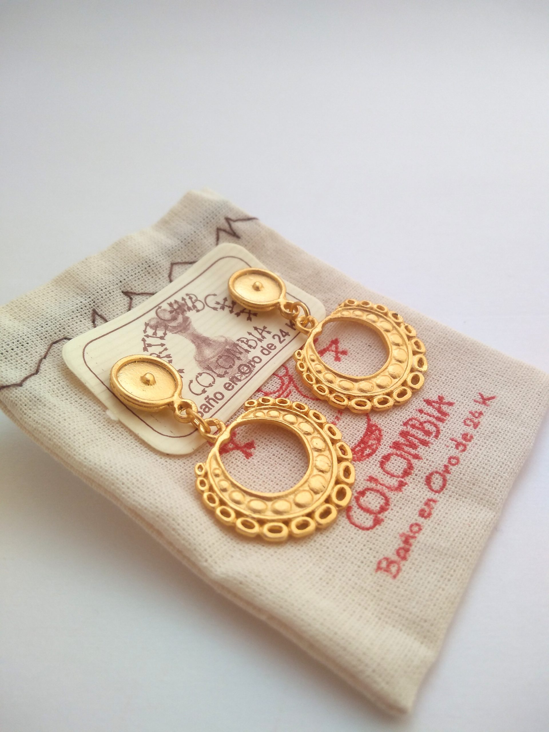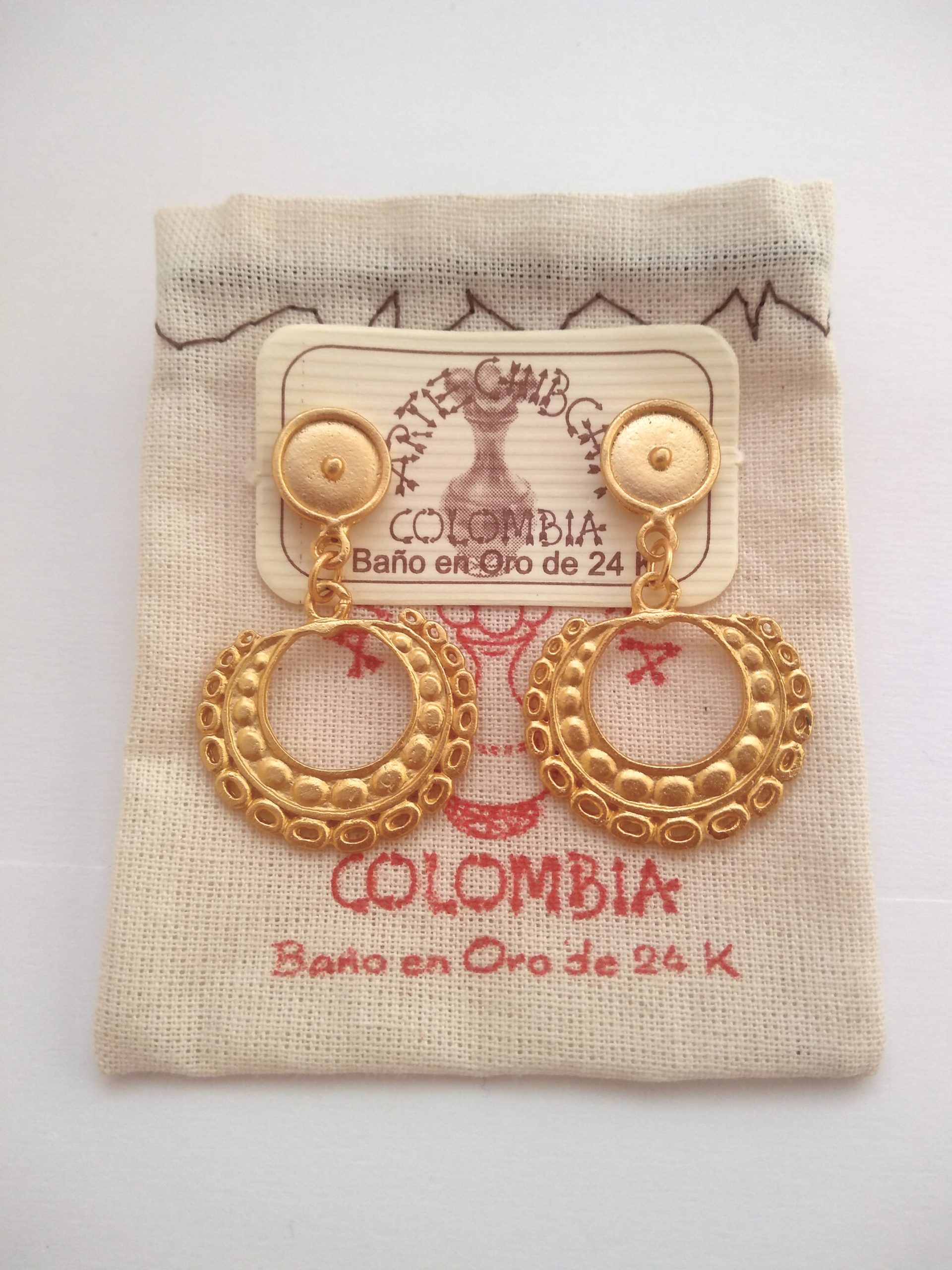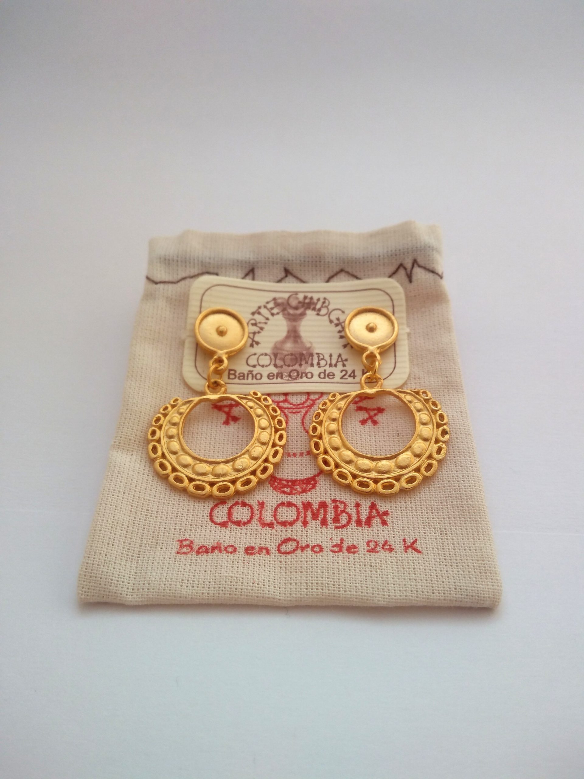 Elaborado con una aleación de metales, cuentan con un baño de oro 24 kilates con sistema puya antialérgico, así mismo cuenta con su respectiva bolsa protectora. Ref. Cal6-6