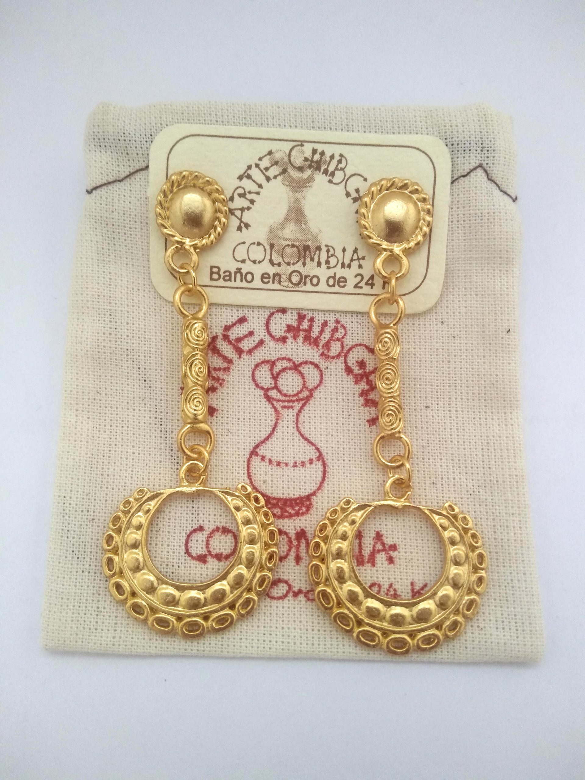 Elaborado con una aleación de metales, cuentan con un baño de oro 24 kilates con sistema puya antialérgico, así mismo cuenta con su respectiva bolsa protectora. Ref. Cal6-6-52