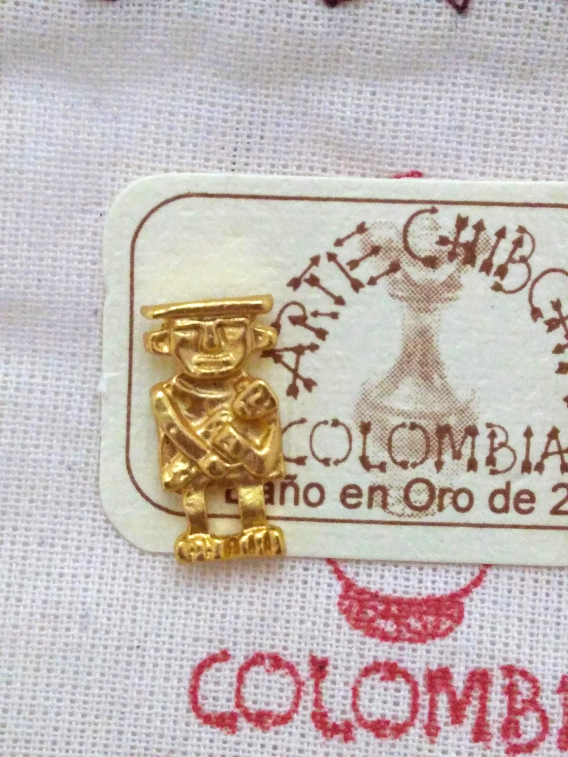 | Certificado | Usted ha comprado una pieza precolombina de Arte Chibcha Colombia Estas joyas se fabrican con una aleación de varios metales a la que después de algunos procesos controlados se les aplica un baño de oro, bronce envejecido o plata vieja según sea la pieza adquirida; de alta adherencia y confiabilidad. |