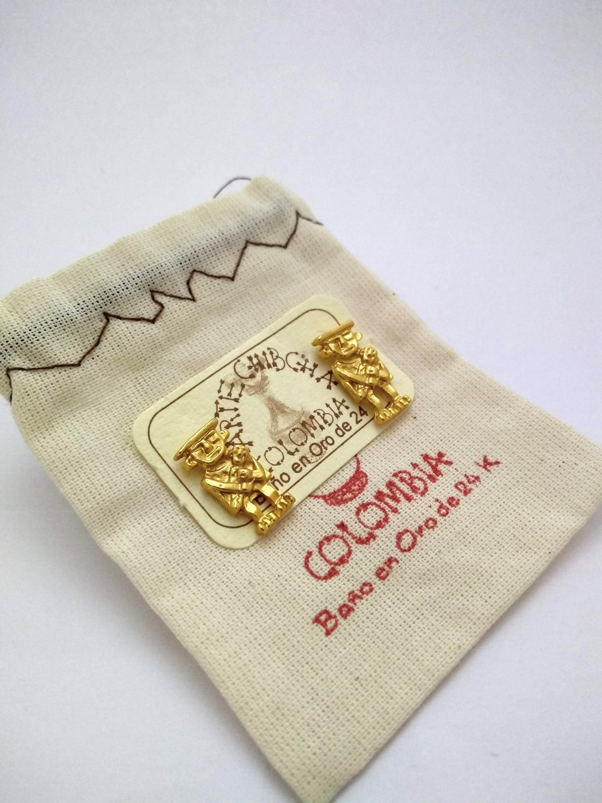 Elaborado con una aleación de metales, cuentan con un baño de oro 24 kilates con sistema puya antialérgico, así mismo cuenta con su respectiva bolsa protectora. Ref. Qui29-1
