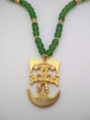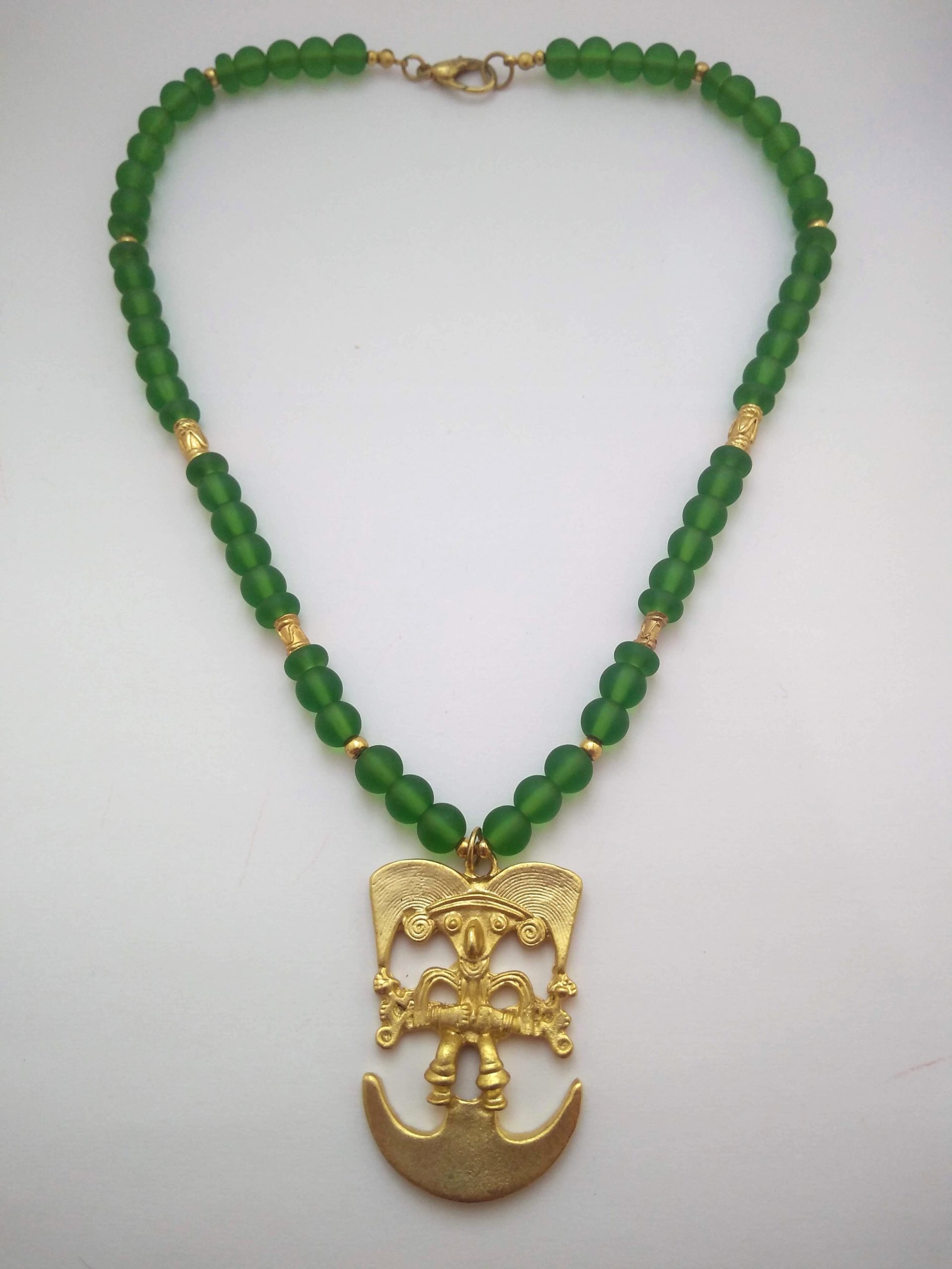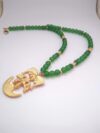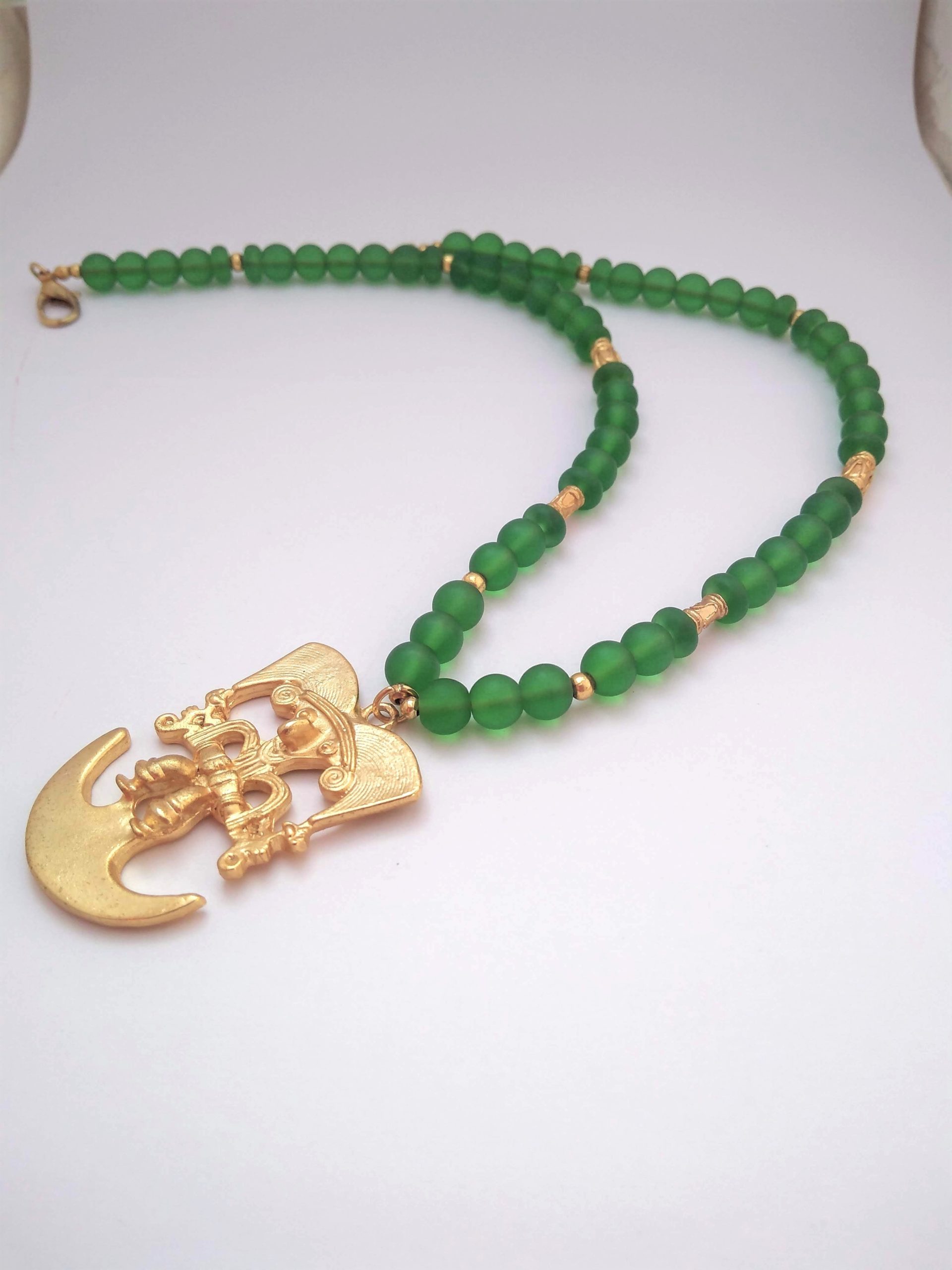 Collar de Cristal Checo tamaño No.8 Color Verde Mate. Dije elaborado con una aleación de metales, cuenta con un baño de oro 24 kilates según elección, así mismo cuenta con su respectiva bolsa protectora. Ref. CCr3 – Cau2 – Verde Mate.